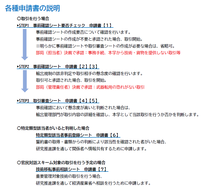 安全保障輸出管理に係る手続き